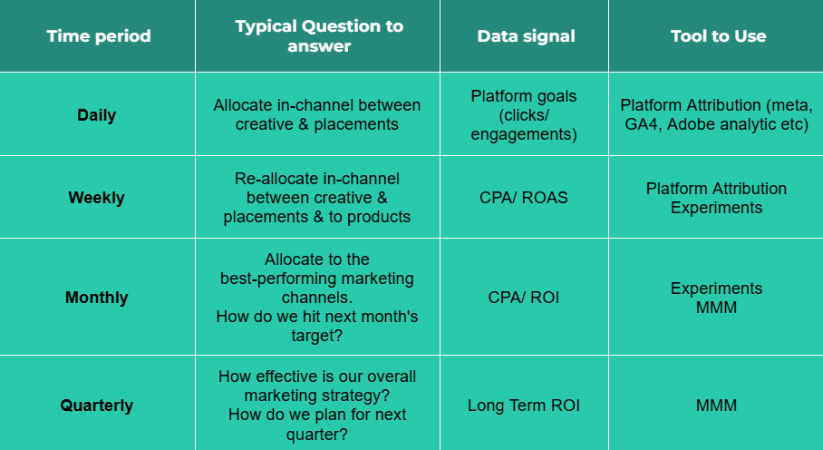 It is not true to say that one measurement solution is best placed to answer all your business questions. Brands need to focus on their key questions, and only then can the right combination of marketing measurement tools be selected. A measurement framework that leverages the speed of experiments and the strategic insight of Always-on MMM is the gold standard for driving growth from marketing measurement.