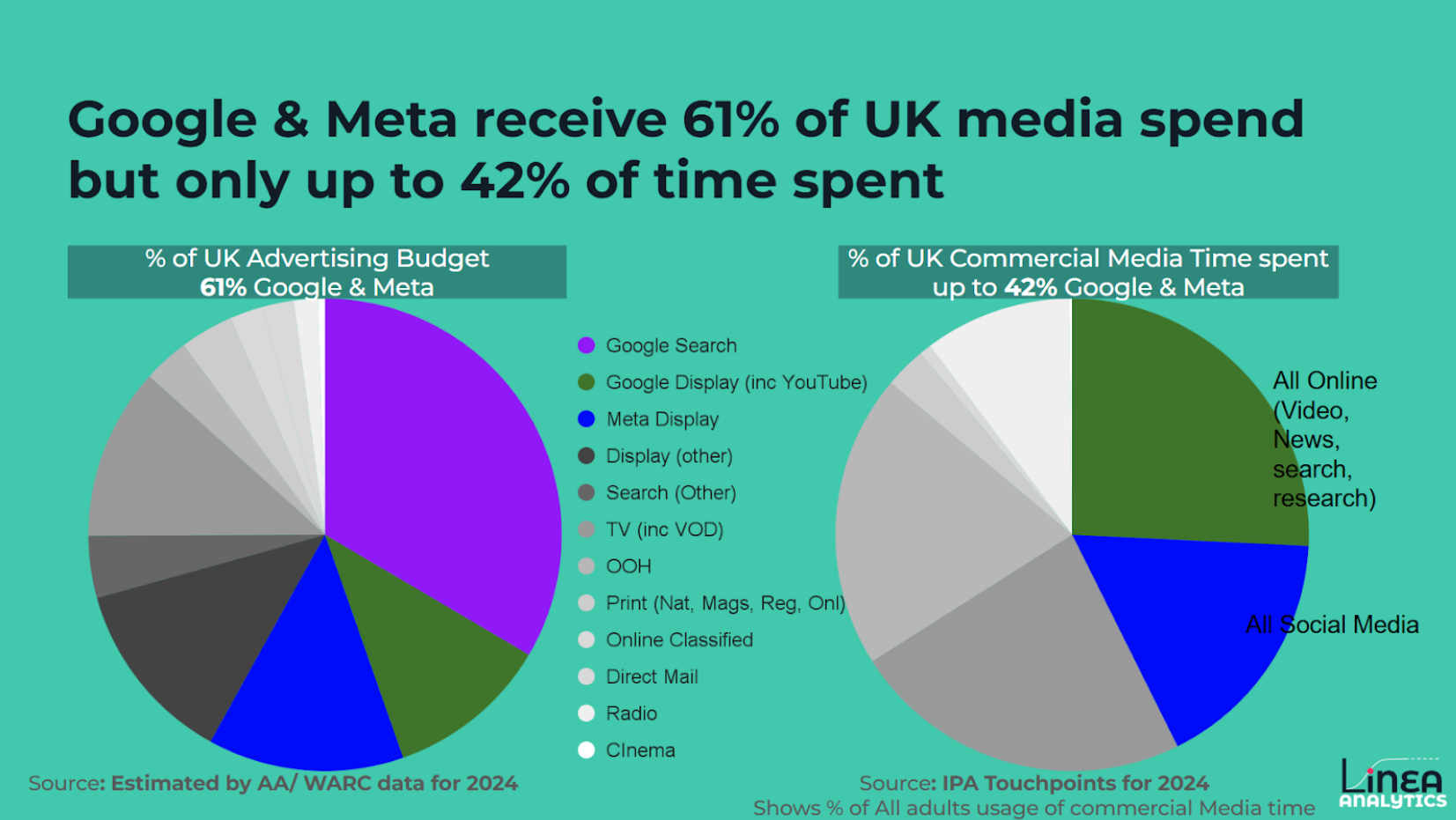 Whether Google and Meta continue to outperform will be central to the measurement work we do at Linea Analytics. What matters most is ensuring that ad spend follows the effectiveness of marketing channels, whether that leads to Google, Meta, or emerging platforms.